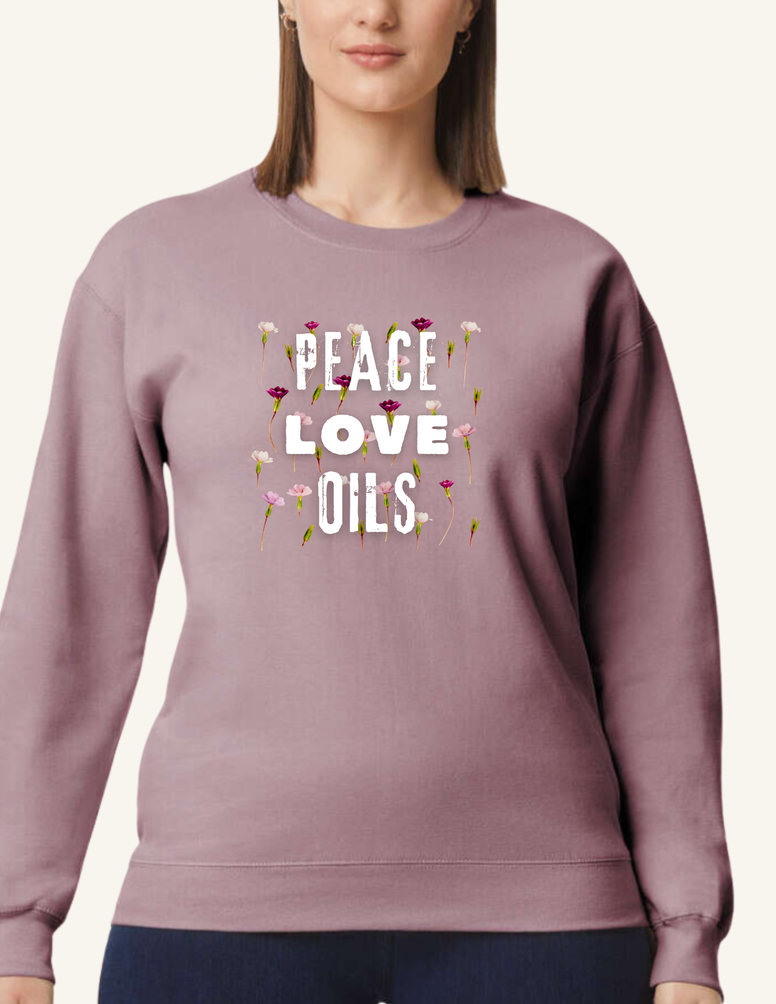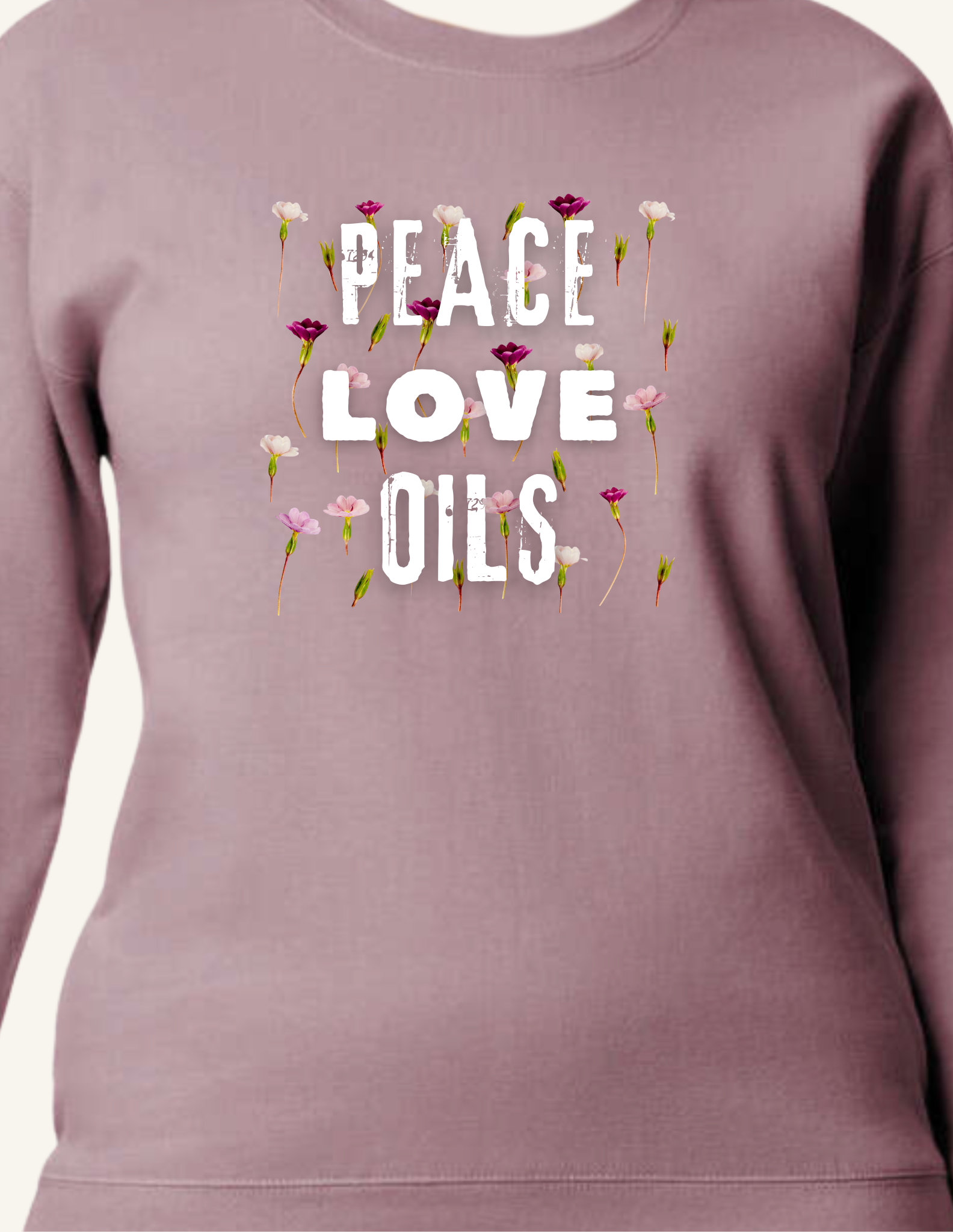 Wrap yourself in comfort and purpose with our Peace. Love. Oils. midweight fleece crewneck. Featuring a soft floral logo design, this cozy classic is perfect for oil lovers who believe in the power of peace and plant-based wellness.